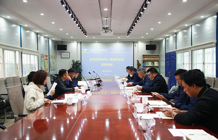 6月10日下午,云南鄭保中西醫(yī)結(jié)合醫(yī)院有限公司總經(jīng)理周清玉、昆明三博腦科醫(yī)院項目籌備組副總經(jīng)理岳坤一行五人到公司五華醫(yī)院項目考察。公司黨委副書記、董事長王楷銀,黨委書記、董事長蔣璽,副總經(jīng)理仲金榮、石俊出席交流會。