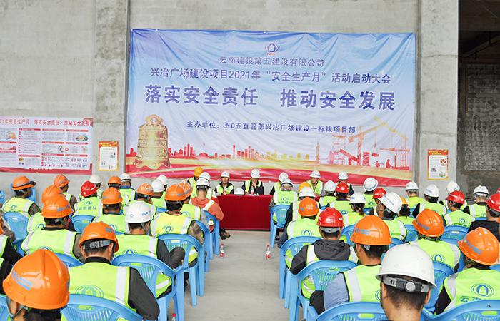 6月11日上午,興冶廣場建設項目一標段現場,伴隨著“落實安全責任,推動安全發(fā)展……”的洪亮宣誓聲,五〇五直管項目部2021年安全生產月活動正式開始。