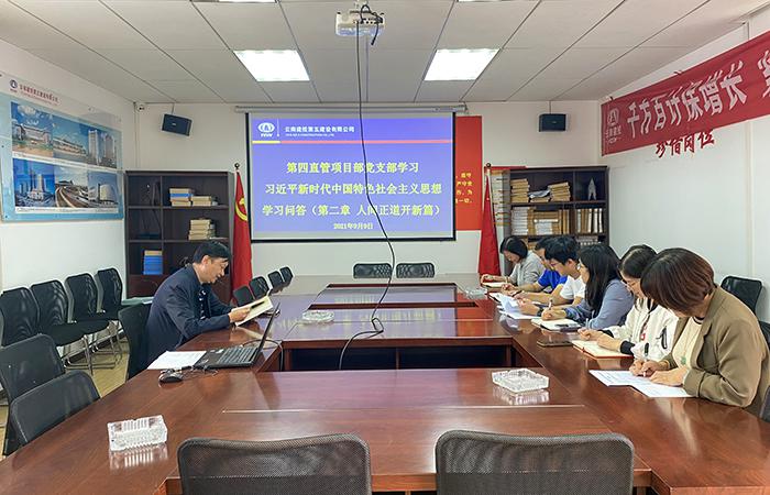 9月9日,第四直管項目部黨支部組織在昆黨員職工學習《習近平新時代中國特色社會主義思想問答》第二章 人間正道開新篇,共8名黨員職工參與學習。