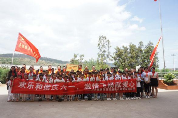 技術(shù)支持: 方森科技 6月2日,公司路橋四部為駐地周邊的漢邑村小學(xué)、玉屏村小學(xué)及附屬幼兒園、曲陀關(guān)小學(xué)這四所學(xué)校的孩子們送祝福。這天一大早,彌玉高速展宏青年突擊隊(duì)“橙色小分隊(duì)”的隊(duì)員們就開(kāi)始忙碌起來(lái)了,將學(xué)習(xí)用品、小蛋糕及盆景等裝車(chē)送到孩子們的手中。