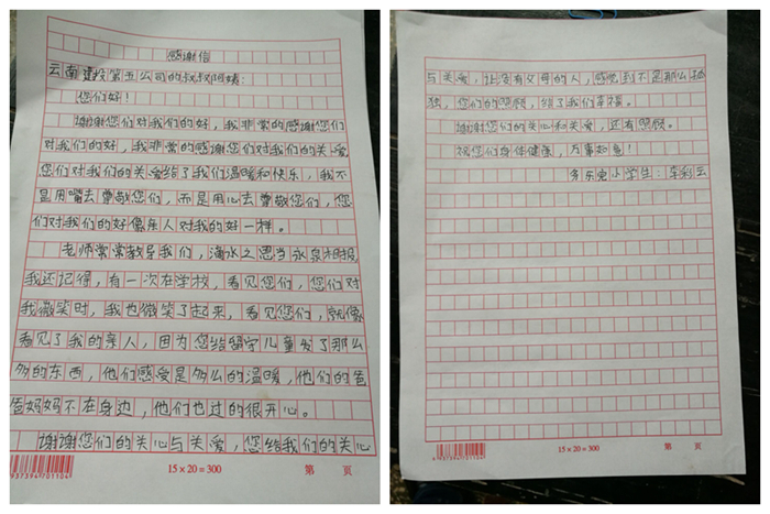 活動結(jié)束后,兩名小朋友委托集團扶貧工作隊給公司寄來了感謝信。青年職工們表示在這樣的實踐活動中不僅學(xué)習(xí)了雷鋒精神還感受到了企業(yè)的責(zé)任與擔(dān)當(dāng)。