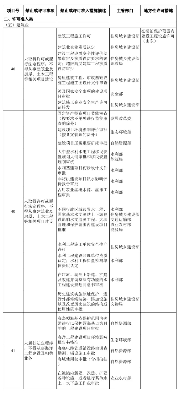 在2019版《市場(chǎng)準(zhǔn)入負(fù)面清單》中,與建筑業(yè)相關(guān)的事項(xiàng)與規(guī)定有:
