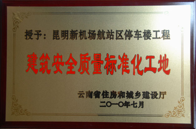 公司承建的新機(jī)場(chǎng)航站區(qū)停車樓工程獲省建設(shè)廳授予“建筑安全質(zhì)量標(biāo)準(zhǔn)化工地”稱號(hào)
