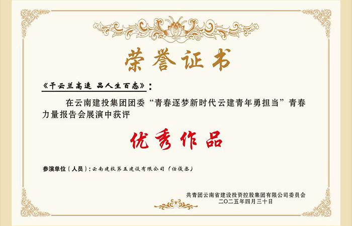 2025年五四青年節(jié),集團舉辦“青春逐夢新時代 云建青年勇?lián)?dāng)”青春力量報告會。展演中,由公司團委、市政路橋四部聯(lián)合編創(chuàng)的脫口秀《干云蘭高速,品人生百態(tài)》作品獲評“優(yōu)秀作品”。公司市政路橋四部團支部書記任俊丞以游戲副本作為脫口秀主線,講述修建云蘭高速過程中體會到的人生百態(tài)。生動展現(xiàn)了五建青年在高速公路建設(shè)中的熱血拼搏與敬業(yè)奉獻,贏得現(xiàn)場觀眾的陣陣掌聲與廣泛贊譽。公司團委將繼續(xù)秉持初心,緊跟集團團委…