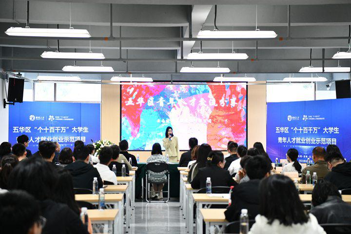 公司職工在五華區(qū)“個十百千萬”大學(xué)生青年人才就業(yè)創(chuàng)業(yè)示范項目發(fā)布會進行宣講