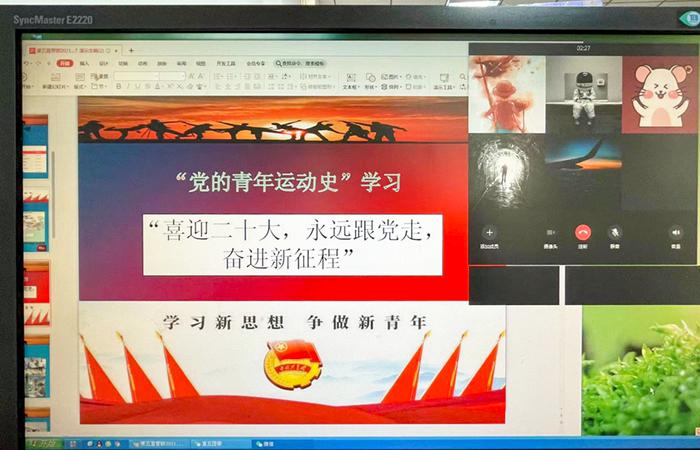 4月19日,第五直管項目部團支部組織直管部團員開展線上“黨的青年運動史”學習活動。學習圍繞“喜迎二十大,永遠跟黨走,奮進新征程”展開,學習旨在讓青年職工明確堅定跟黨走的信心與決心,并結合各自崗位職責,激勵大家要愛崗敬業(yè)、珍惜崗位,利用自身優(yōu)勢匯聚青年力量,以優(yōu)異成績,迎接黨的二十大勝利召開?。ㄘ熑尉庉嫞豪畋c)…